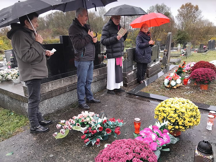 Nakon svete mise, koja je službena po obrascu svetkovine Svih Svetih, župnik je u kapeli izmolio opijelo – molitvu za sve vjerne mrtve koji počivaju na ovom groblju, a potom je molio pojedinačno nad grbovima onih pokojni, za koje je rodbina izrazila želju da se moli.