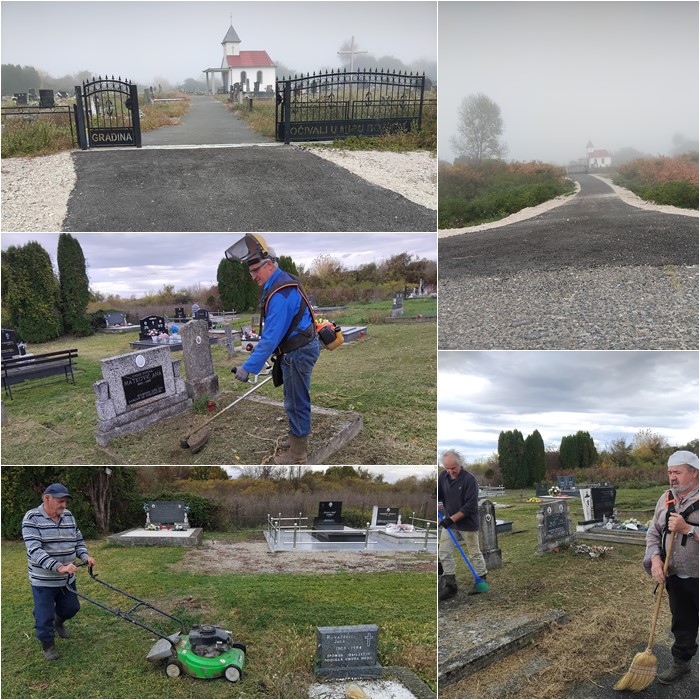 Samo groblje je uredno dočekalo svoje vjernike. Pokupljeni su lampiona po njemu i obavljeno je šesto ovogodišnje košenje. U tom poslu su uobičajeno sudjelovali Mato Knežević – Maća, Milorad Oršulić – Mican i Luka Čegrlj, a ovoga puta uz Maću i Micana akciju košenj trave su poduprli Ivo Oršulić iz Nove Gorice i Anto Kovačević iz Bosanske Gradiške.